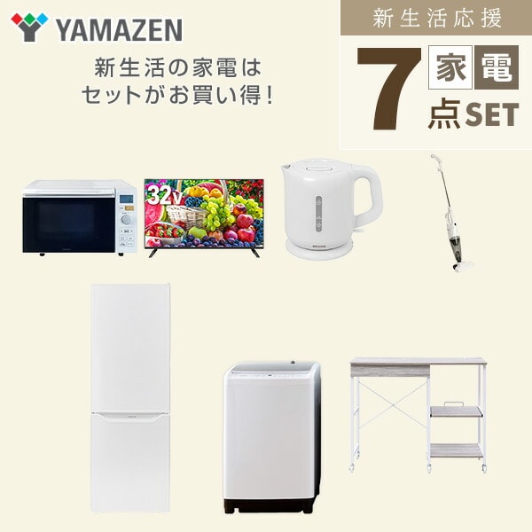 新生活家電セット 7点セット 一人暮らし (8kg洗濯機 173L冷蔵庫 オーブンレンジ 32型液晶テレビ 電気ケトル スティッククリーナー レンジラック) ひとり暮らし 単身赴任新 学生 入学 おすすめ 山善 YAMAZEN【送料無料】