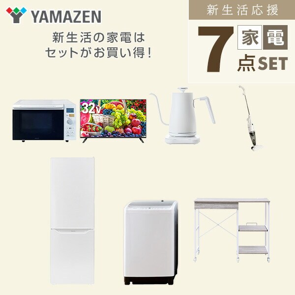 新生活家電セット 7点セット 一人暮らし (8kg洗濯機 173L冷蔵庫 オーブンレンジ 32型液晶テレビ 温調ケトル スティッククリーナー レンジラック) ひとり暮らし 単身赴任新 学生 入学 おすすめ 山善 YAMAZEN【送料無料】