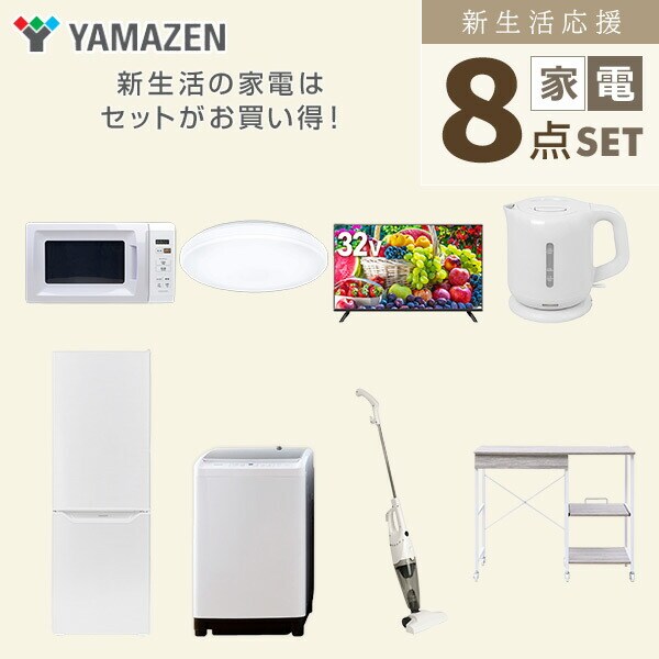 新生活家電セット 8点セット 一人暮らし (8kg洗濯機 173L冷蔵庫 電子レンジ シーリングライト 32型液晶テレビ 電気ケトル スティッククリーナー) ひとり暮らし 単身赴任新 学生 入学 おすすめ 山善 YAMAZEN【送料無料】