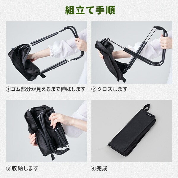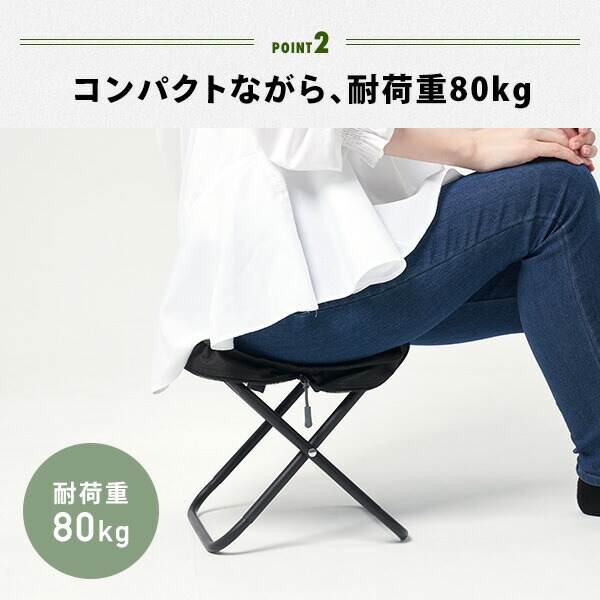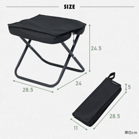 | 商品説明 | ●耐荷重:80kg ●折りたたみ時サイズ:幅11×奥行28.5×高さ5cm ●座面高さ:24.5cm ●たった10秒簡単設営 ●座面と収納袋が一体型なので、収納袋の紛失の心配がありません |