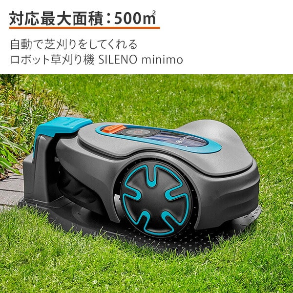 ロボット芝刈り機 自動 設置業者不要 SILENO minimo 対応面積500平方メートル 刈幅16cm 雨天走行可能 15202-57 充電式 Bluetooth アプリ操作 エコ チャージステーション付き 衝突センサー機能 ガルデナ GARDENA 【送料無料】