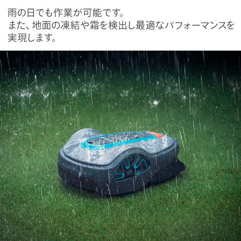 | 商品説明 | ●自動で芝刈りをしてくれるロボット芝刈り機。 ●刈り取りエリア:境界ワイヤーでエリアを囲い、そのエリア内で稼働。 ●対応最大面積:750平方メートル ●刈高:最小20mm 最大50mm ●刈幅:22cm ●作業エリア内の最大許容傾斜角:35% ●充電時間:約60分 ●充電1回当たりの標準運転時間:約65分 ●最大使用時の1か月当たりの平均エネルギー消費量:最大使用時 4kW/h ●切断システム:回転ブレード3枚 ●1日に必要な活動時間(芝刈と充電):最大面積容量の場合 11時間 ●PINコード:有 ●アラーム:有 ●リフトセンサー:有 ●傾斜センサー:有 ●スマートフォンに専用のGARDENA Bluetooth アプリ(無料)をインストール。簡単にロボット芝刈り機を10m以内の距離でスマホで操作管理 ●中規模サイズのエリア・家庭での使用に向く設計 ●静かに芝草を刈り稼働の音が目立たない静音性の高さ。 ●ワイヤーと本体の簡単な設置。 ●PSE認証済み ●静音性:騒音レベル 57dB(A)~稼働の音が目立たない。 ●雨天でも走行可能。 霜センサーにより凍結や霜のある地面の状態を検出し、溶けるまでプログラムを一時停止させるなど、最適なパフォーマンスを実現する。アプリを使用してオンオフの切り替えが可能。 ※集中豪雨や暴風など、極端な気象環境下では室内に入れて頂くことを推奨。 ●衝突センサー機能:芝刈り機が障害物にあたっても停止せず、方向を変えて走行しなおす。 ●安全性:本体を持ち上げるとブレードを即座に停止させ、怪我を防ぐ。 ●お手入れが簡単:散水ホースで水で軽く流して、ハウジング、ブレード、ホイールの汚れやほこり、草の刈くずを洗浄。 ●スポットカット:刈り残しや手の届きにくい場所をらせん状に刈ることが可能。 ●お客様のお持ちの工具を使ってご自身で簡単に設置可能です。 ●設置に必要な工具:お客様のお持ちのハンマー、ニッパー、ウォーターポンププライヤー(ペンチ)を使って設置。 ●月1回の掃除を推奨。 ●セット内容:ロボット芝刈り機本体、チャージステーション、ワイヤーロール 200m長、ペグ 300本、カプラー4個、接続クランプ 5個、取扱説明書(日本語版) ※本製品を使用する前に取扱説明書をよくお読みになり、内容をしっかり把握したうえで本製品を使用してください。 |