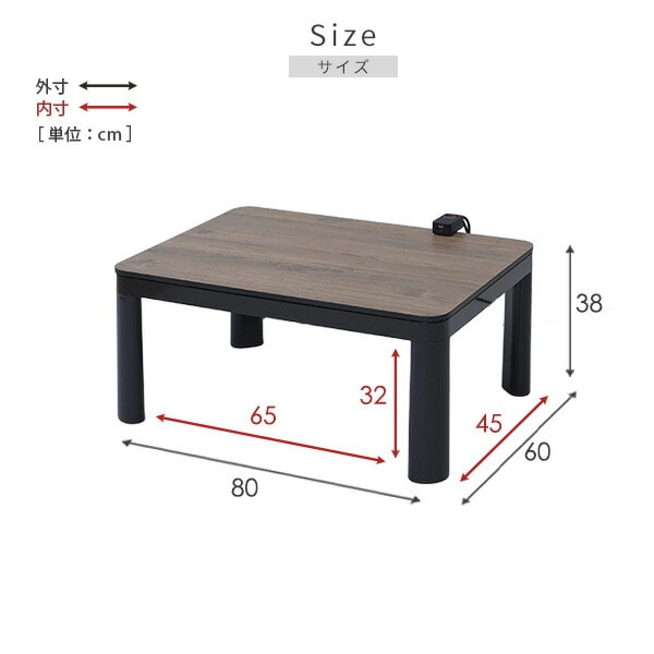 | 本体サイズ | こたつ本体:幅80×奥行60×高さ38-41cm 重量8.8kg |