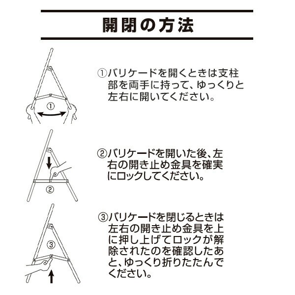 | 商品説明 | ●小型フェンススタンド×2とチェーンのセット 【使用上の注意】 ・強風による被害が予想される場合は予め避難させてください ・開閉の際は指や手を挟まないように十分ご注意ください。特にお子様には注意し、組立てや収納をさせないようにしてください ・バリケードは完全に広げて使用してください ・製品の上に乗らないでください。特にお子様にはご注意ください ・水平を保てる場所に設置し、ご使用ください ・床面がフローリングや畳などの場合はカーペット類を使用して床面の保護を行ってください |