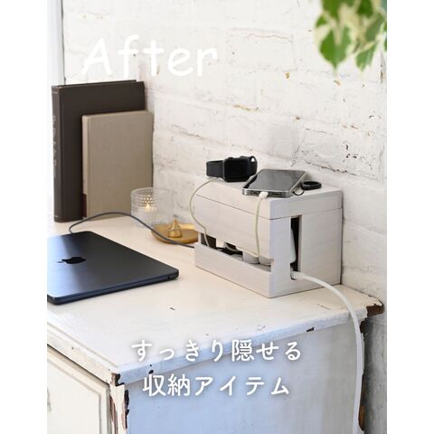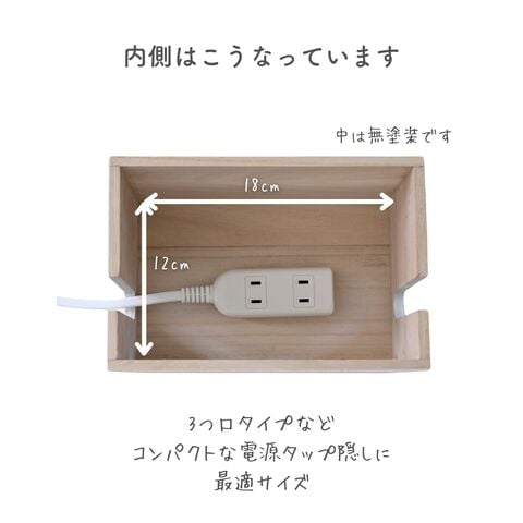 | 商品説明 | ●完成品でお届け ※手作りのため、研磨の精度や細部の塗装には個体差がございますので、見本写真をご参照の上、予めご了承ください。 ●電源タップをすっきり隠せる、ケーブル収納ボックス ●木製タイプ、フタ付き ●対応目安、3口のコンパクトサイズ ●大きめのアダプタもしまえる、深型設計 ●外側には、電源タップのON/OFF操作にうれしいスリット窓付き ●短側面には配線スリットがあり、コード通し可能 ●フタは着脱式 ●内寸:幅18 奥行12 深さ計13(側板11+フタ2)cm ●短側面スリット窓: 2×9cm ●塗装面は外側の5面(底面と内部は無塗装) |
