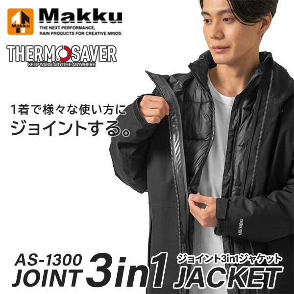 | マック Makku 防水防寒 ジョイント3in1ジャケット 中綿入り 耐水圧20000mm 透湿度20000g 防寒透湿素材 ヘルメット対応 軽量ナイロン素材 AS-1300 |