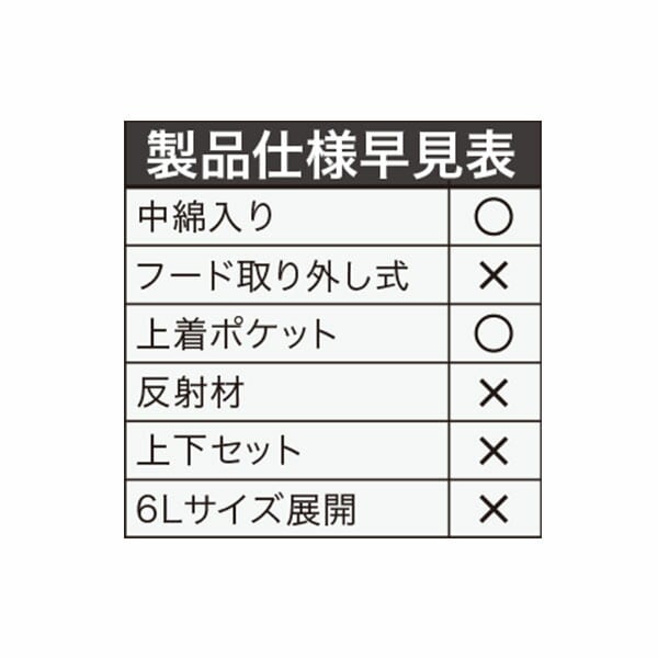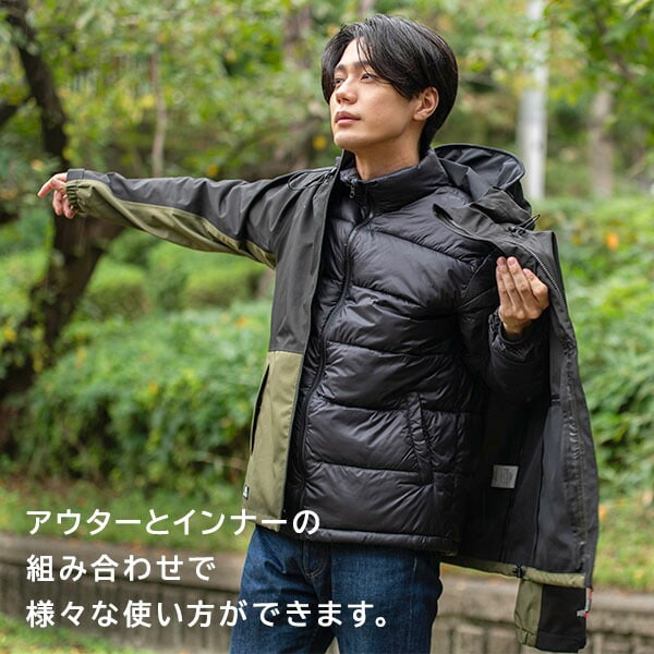 | 商品説明 | ●気温や天候に合わせた着用方法にジョイントする3in1ジャケット ●環境に配慮した非フッ素撥水剤を使用 【防水アウター】 ●耐水圧20,000mmH2O以上 ●透湿度20,000g/m2-24h以上 ●3LAYER防水透湿素材 ●ヘルメット対応のセーフティフード 【防寒インナー】 ●中綿:140g※袖部分のみ100g ●軽量ナイロン素材使用 ●YKK製ビスロンファスナー |