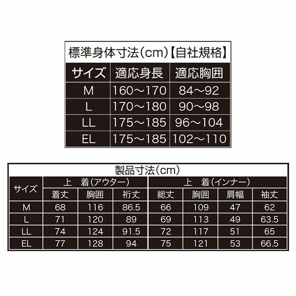 | 材質 | 【アウター】 表地:ポリエステル100%/裏地:ポリエステル100%、トリコット、はっ水 【インナー】 裏地:ナイロン100%/中綿:ポリエステル100%/裏地:ナイロン100%。はっ水 |