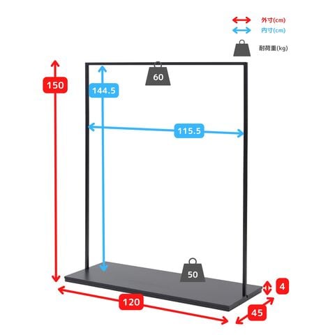 | 本体サイズ | 幅120×奥行45×高さ150cm 重量11kg |