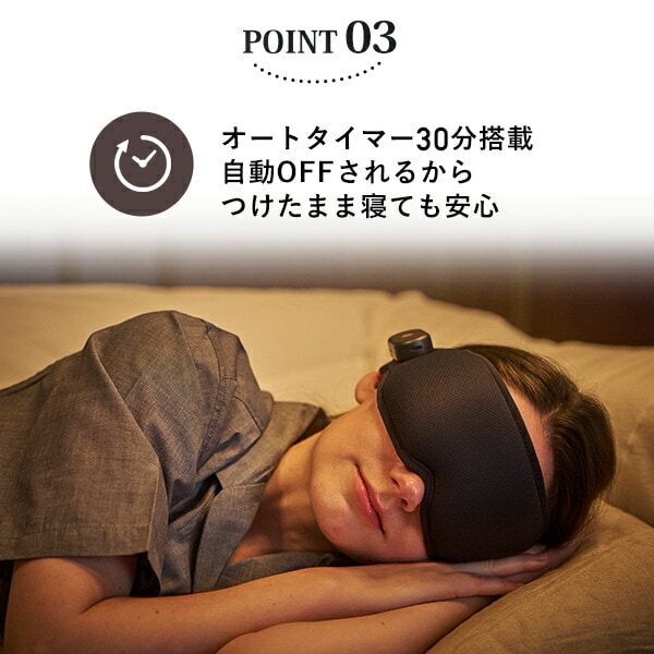 | 商品説明 | ●振動と温感で目元ケアできるホットアイマスク ●充電時間:約1.5時間 ●連続使用時間:30分 ●オートタイマー:30分 ●じんわり温感が疲れ目にアプローチ ●さざ波のようなウェーブ振動で目元リフレッシュ ●約45℃のヒーターでじんわり温め睡眠をサポート ●自動OFF機能付きだからつけたまま寝ても安心 ●目を圧迫しない3Dウレタン設計 ●繰り返し使えて高コスパ ●付属品:USBケーブル(タイプC-タイプA)80cm ●メーカー保証:1年 ※アダプターは付属しません ※本製品は医療機器ではありません |