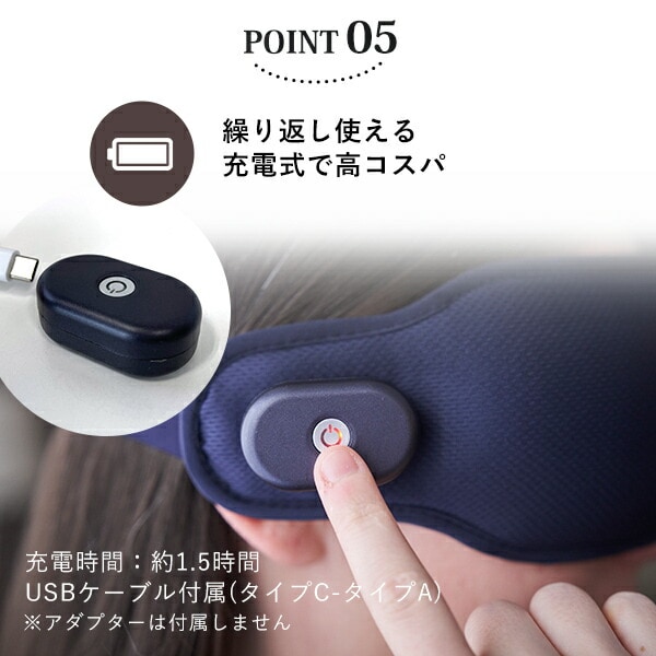振動&温感 アイマスク ネムリ―ナ ITEM08 ネイビー アイマッサージャー ホットアイマスク 疲れ目 目元ケア 安眠 温感 充電式 惣田製作所 medi labo 【送料無料】