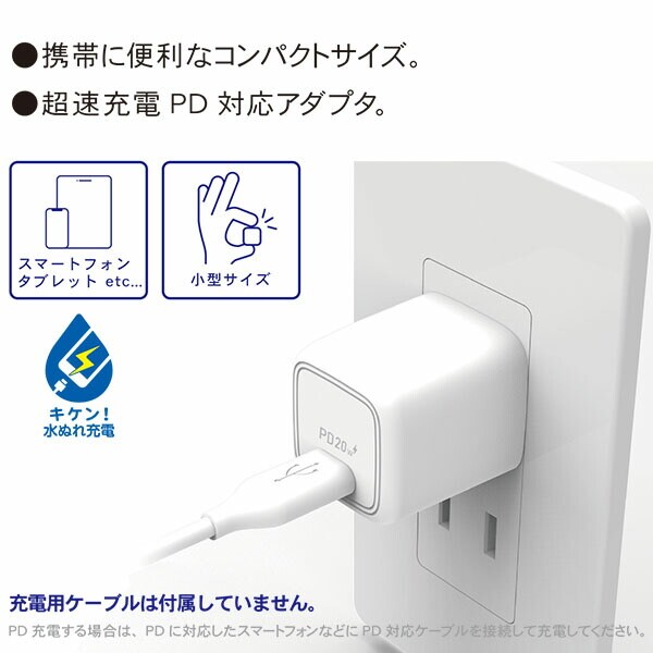 PD20W コンセント用USBアダプタ ACPS20-WT/BK/PU/PK/MG コンセント用 充電 アダプター コンパクト PD対応 コンセントタップ 20W トップランド TOPLAND 【送料無料】