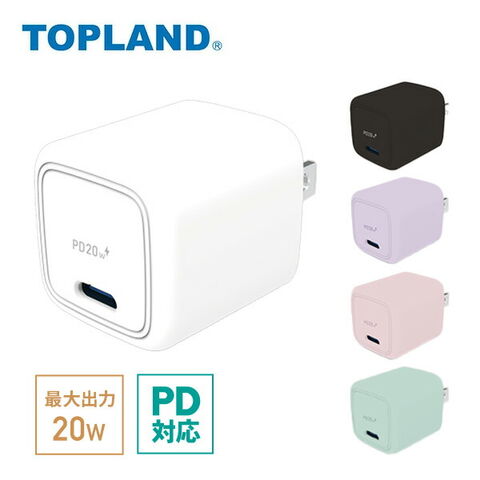 | トップランド TOPLAND PD20W コンセント用USBアダプタ ACPS20-WT/BK/PU/PK/MG |