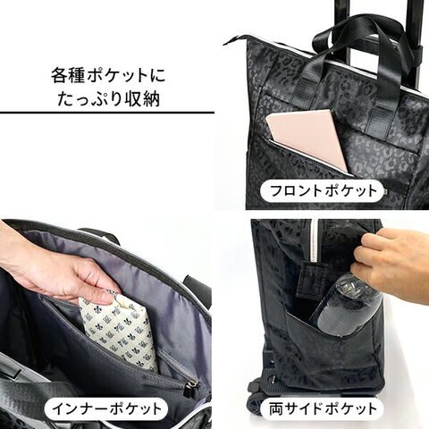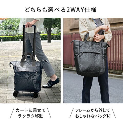 4輪カート カートバッグ 18L 2WAY レオパード ブラック キャリーカート カート ショッピングバッグ ショッピングカート 旅行 トラベル おしゃれ ヒョウ柄 ココロ COCORO 【送料無料】