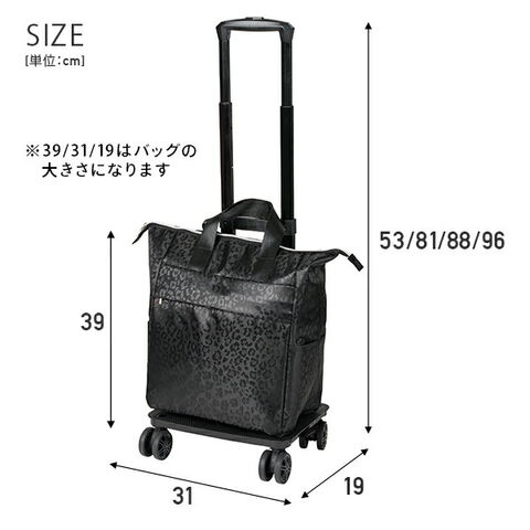 | 本体サイズ | バッグ:幅31×奥行19×高さ39cm カート高さ:4段階(53/81/88/96cm) |