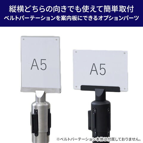 | 商品説明 | ●簡単取り付けでベルトパーテーションを案内板にできるオプションパーツ ※ベルトパーテーション本体は付属しておりません ●対応可能な用紙サイズ:A5サイズ ●縦横お好みの向きで使用可能 ●上から被せるだけの簡単取付 |