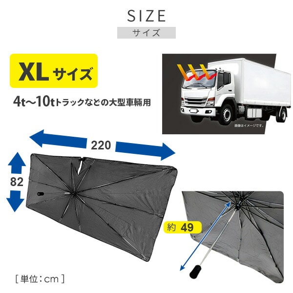 | トレードワン サンシェードパラソル 車用サンシェード XLサイズ 4t~10tトラック用 傘 折りたたみ 日除け フロントガラス 90115 |