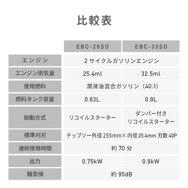 | 商品説明 | ●土手・河川敷、農地の草刈りで使いやすいスタンダードタイプ ●本体2分割タイプで保管も持ち運びもコンパクト ●安定した作業ができる両手ハンドル仕様 ●手元スイッチで素早く安全に使用可 ●操作性・安全性の良いスロットルレバーを搭載 ●草・小石の飛び散りを防ぐ防護カバー付で安心 ●エンジン:2サイクルガソリンエンジン ●エンジン排気量:32.5ml ●使用燃料:潤滑油混合ガソリン(40:1) ●燃料タンク容量:0.8L ●始動方式:ダンパー付きリコイルスターター ●標準刈刃:チップソー外径255mm×内径25.4mm 刃数40P ●メインパイプ径:約26mm ●ハンドルパイプ径:約19mm |