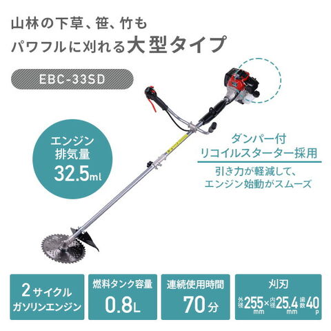 エンジン刈払機 2サイクルガソリンエンジン 排気量32.5ml タンク容量0.8L 連続使用約70分 飛散防護カバー付き EBC-33SD 芝刈 草刈 庭 庭園 公園 緑地 土手 河川敷 農地 除草 ナカトミ NAKATOMI ドリームパワー 【送料無料】