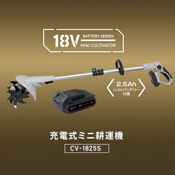 18V 充電式 ミニ耕運機 家庭用 伸縮 耕幅200mm 耕深80mm 2.5Ahリチウムイオンバッテリー・充電器付属 18V共通バッテリーシリーズ CV-1825S YBP-1825 YCH-18V 耕うん機 コードレス 小型 充電式 畝立て 山善 YAMAZEN 【送料無料】