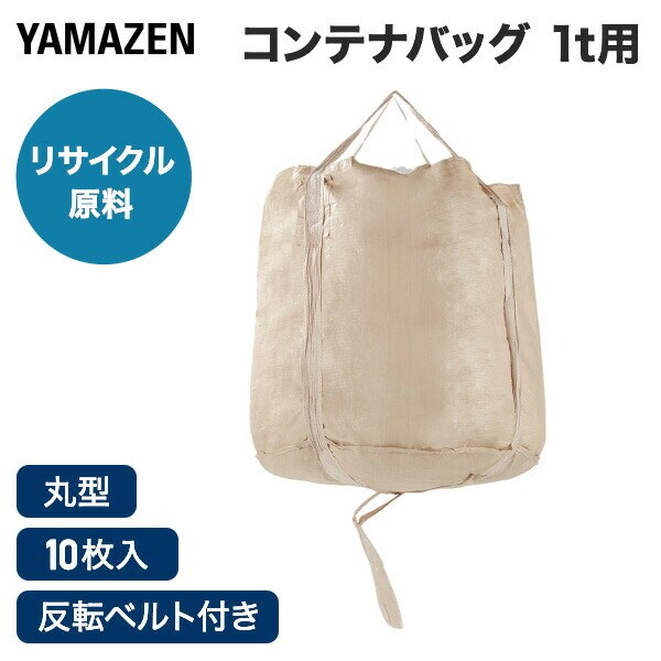 フレコンバッグ コンテナバッグ 10枚セット 1t 1000L 丸型 リサイクル原料 排出口なし 反転ベルト付き ベージュ YBAG-1 土木作業 建築現場 廃材 搬出 山善 YAMAZEN 【送料無料】