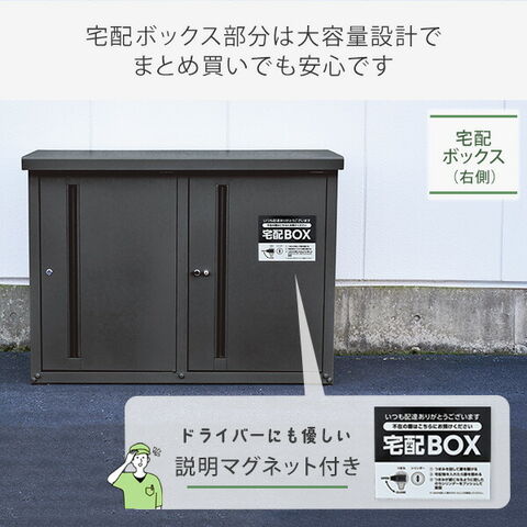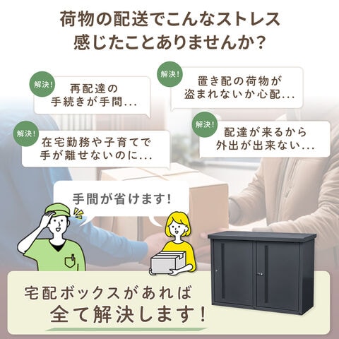 | 商品説明 | ●宅配ボックスと収納庫の2way仕様 ●ハイテンション亜鉛メッキ鋼板採用で硬度UP。衝撃に強く、サビにも強い ●収納庫、宅配ボックス部分それぞれに専用鍵付き ●可動棚1枚付き ●灯油缶が3個入る ●宅配ボックスは100サイズ受取可能 ●使い方説明マグネット付き ●組立時はプラスドライバーをご用意ください ●耐荷重:(底板)約100kg、(棚板)約30kg ※完全防水仕様ではございません |