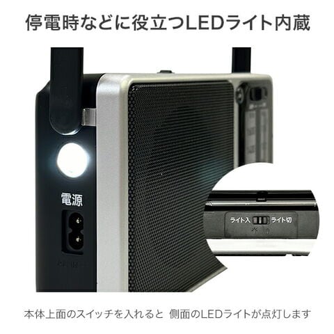 | 商品説明 | ●AM/FMラジオに特化した据え置き型ラジオ ●停電時や防災を見据えたLEDライト内蔵 ●消し忘れを防ぐLED電源ランプ付き ●受信感度を高める伸縮回転式ロッドアンテナ ●災害時にも役立つ単二乾電池×3本で長時間再生 ●大きな目盛り、ダイヤルでチューニングが合わせやすい ●直径9cmのスピーカーで音声がはっきり聴こえる ●AM受信周波数:530~1600KHz ●FM受信周波数:76~108MHz ●伸縮回転式ロッドアンテナ ●3.5mmモノラルイヤホン端子 ●電源:単二乾電池×3本(4.5V別売り) ●電池連続使用時間:AM/約120時間、FM/約114時間(スピーカー使用で音量中程度の場合) ●付属品:取扱説明書(保証書付)、電源コード |