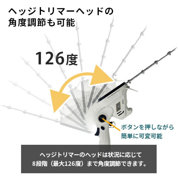 | 本体サイズ | 全長1350-1720×幅80×高さ115mm、重量約1.8kg ※本体サイズと重量はヘッジトリマーとポール装着時 |