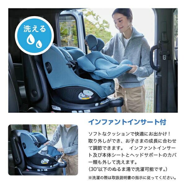 | 商品説明 | ●コンパクトタイプの360°回転式チャイルドシート ●サイドの回転式ボタンで簡単に切り替え ●ISOFIX取付でミスユースを防ぐことができるチャイルドシート ●成長に合わせて4歳まで使用可能 ●洗えるインファントインサート付き 【使用対象】 ●後ろ向き:適応身長/40~105cm、適応体重2.5~21kgまで ●前向き:適応月齢/生後15ヵ月以上、適応身長/76~105cm、適応体重21kgまで ※こちらの商品は2025年7月10日よりオーク色、ダークスレート色を追加しております |