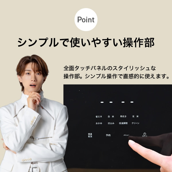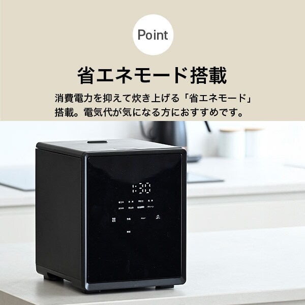 | 商品説明 | ●電源:AC100V(50/60Hz) ●消費電力:615W ●電源コード長:約1.0m ●最大炊飯容量(白米):5.5合(1.0L) ●炊飯方式:マイコン ●蒸発水量:28.0g ●年間消費電力:76.7kWh/ ●1回あたりの炊飯時消費電力:123.8Wh ●1時間あたりの保温時消費電力:20.7Wh ●1時間あたりのタイマー予約時消費電力:1.21Wh ●1時間あたりの待機時消費電力:0.43Wh ●メニュー:省エネ、白米、早炊き、玄米、おかゆ、炊込み、低温調理、クリーン ●保温:炊きあがると自動で保温モードへ ※12時間以上の保温はしないでください ●低温調理:(時間)1-12時間まで5分刻みで時間設定可能 (温度)40-85度まで5度刻みで温度設定可能 ●予約:1-24時間まで30分刻みで設定可能 ●付属品:計量カップ、しゃもじ、電源コード ●メーカー保証:1年間 |