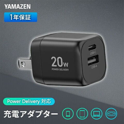 PD対応 アダプター 純正 充電器 20W 急速充電 安心 PSE認証品 YPD-20CA PD対応 ACアダプタ 充電 折りたたみ式プラグ 山善 YAMAZEN 【送料無料】