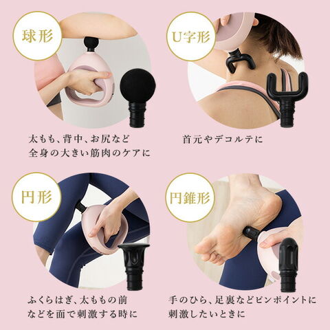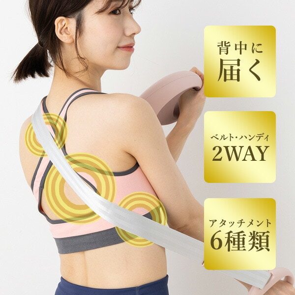 | 商品説明 | ●従来のマッサージガンでは届きにくい背中、腰、首筋に振動ベルトでアプローチ ●ベルト式、ハンディ式どちらでも使用可能 ●ベルト長さ:56~102cm ●振動回数:2900~3850回/分 ●充電時間:3.5時間 ●使用時間:1時間 ●推奨アダプター:定格出力5V 2.5A以下(急速充電非対応) ※アダプターは付属しません。市販品をお使いください。 ●5段階の振動レベルはボタン一つで調節可能 ●5種類のアタッチメント(ベルト用/球形/U字/円形/円錐)で大きい筋肉~足裏まで対応 ●強力な振動を生み出す振幅6mm ●業界最高クラスの最大振動数3850回/分で硬くなった筋膜を簡単ケア ●片手で持っても疲れないラウンド形状 ●耐久性・静音性に優れるブラシレスDCモーターを採用 ※本製品は治療を目的とした医療機器・治療器・マッサージ機・マッサージ器・マッサージャーではありません。また、マッサージ効果を保証するものではありません。 |