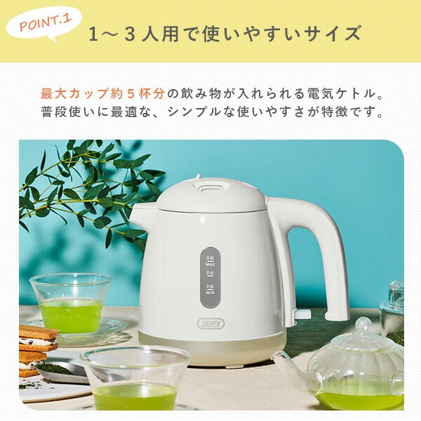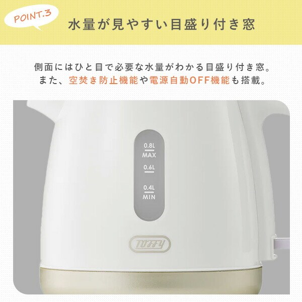 | トフィー Toffy 電気ケトル ケトル 0.8L 小型 電気ポット 軽量 K-HKT1 |