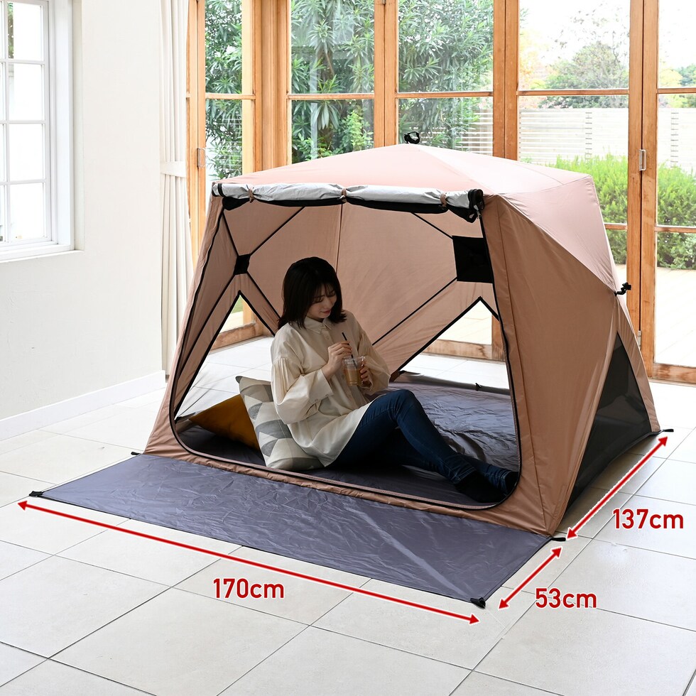 | 本体サイズ | (テント)幅170×奥行190×高さ125cm 重量3.6kg (ジョイントシート)160×130cm |