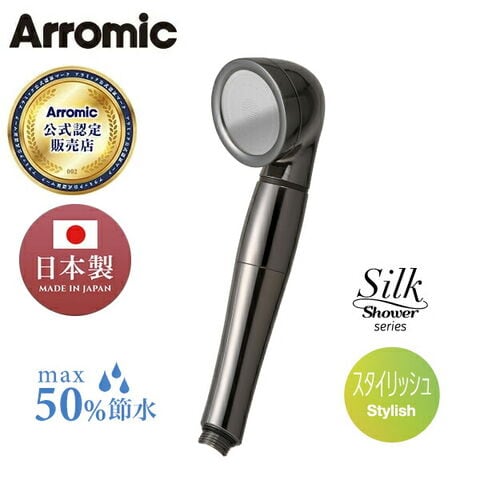 シルクシャワーシリーズ02 スタイリッシュ 節水率最大50% SSS-02 シルバー 日本製 シャワーヘッド 風呂 バスグッズ バス用品 節水 節約 増圧 軽量 ステンレス おしゃれ アラミック Arromic 【送料無料】