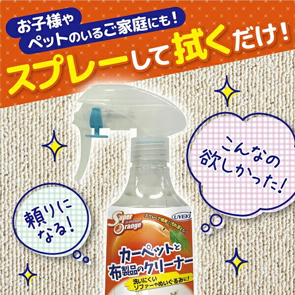 スーパーオレンジ カーペットと布製品のクリーナー 250mL 布製品用洗浄剤 洗浄剤 クリーナー スプレー 2度拭き不要 洗浄 消臭 除菌 オレンジオイル ソファ カーペット カーテン 赤ちゃん用品 ぬぐるみ 布製品 日本製 ウエキ UYEKI 【送料無料】