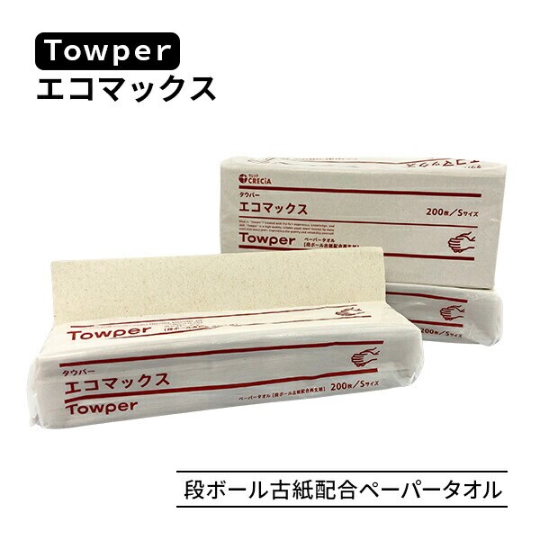 Towper タウパー ペーパータオル エコマックス S 小判 220×170mm 200枚×42パック 50711 段ボール古紙配合再生紙 ハンドタオル 手ふき用タオル 手拭き エコ トイレ 洗面所 手洗い 日本製 まとめ買い ケース販売 日本製紙クレシア 【送料無料】