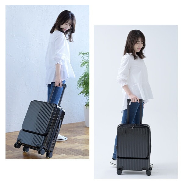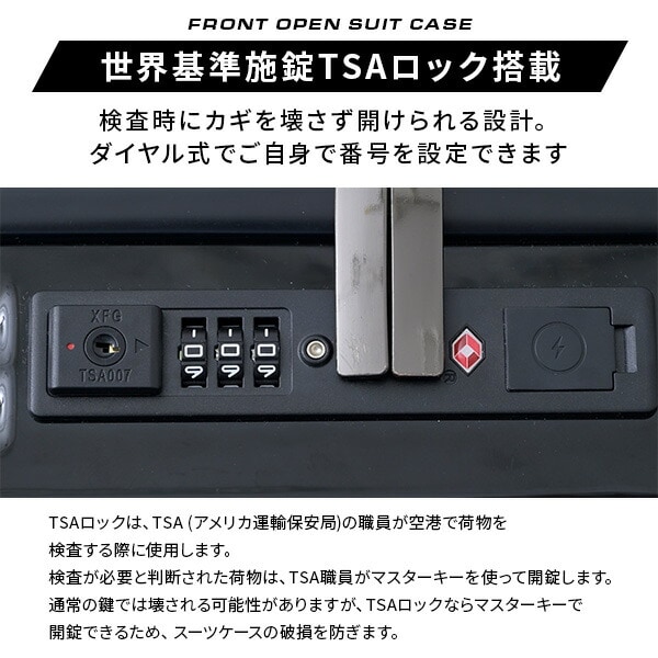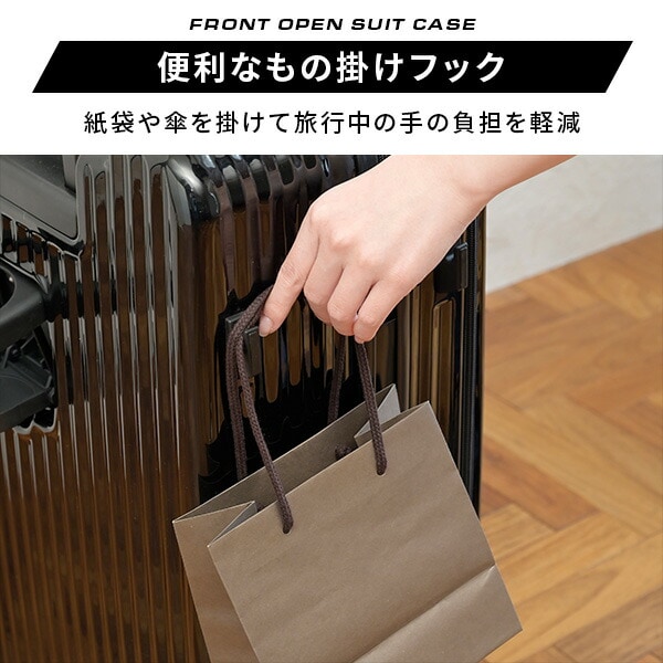 | 商品説明 | ●容量:35L ●立てたまま荷物の出し入れが可能 ●本体表面は光沢仕上げでワンランク上の高級感 ●フロントの仕切りを外すと大容量の荷室に! ●TSAロック機能 ●カップホルダー付き ●小物用フック付き ●USBポート付きで内部でお手持ちのポータブル電源につないでおけばスーツケースの外側からスマホに給電可能 ・入力端子:USB Type-C ・出力端子:USB Type-A、Type-C ※移動しながらのご使用は出来ません。USBポートを使ったモバイル機器の充電機能は必ず静止状態でご使用ください ※モバイルバッテリーにUSB充電ケーブル(Type-C入力端子)を差し込んだままでスーツケース内に保管することはお止めください ●キャスターは付属の工具で交換が可能。予備車輪1個付き |