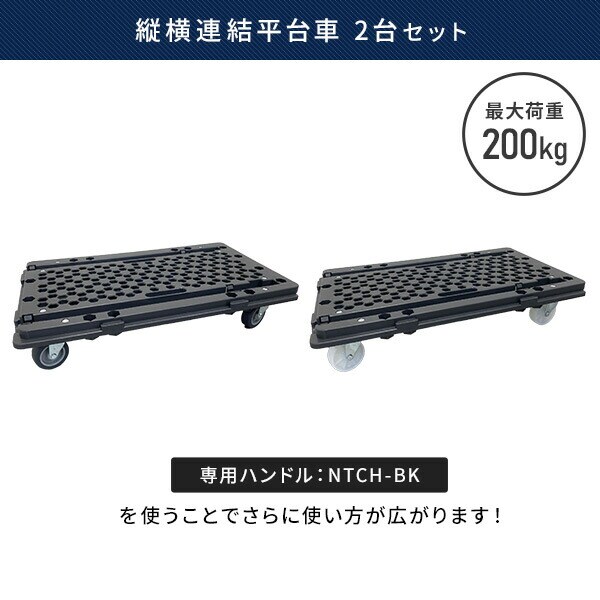 | 日東 NITTO ハンドルの位置が変えられるマルチ連結平台車 平台車2台セット NTC-N75GY/NTC-E75GY/NTCH-BK |
