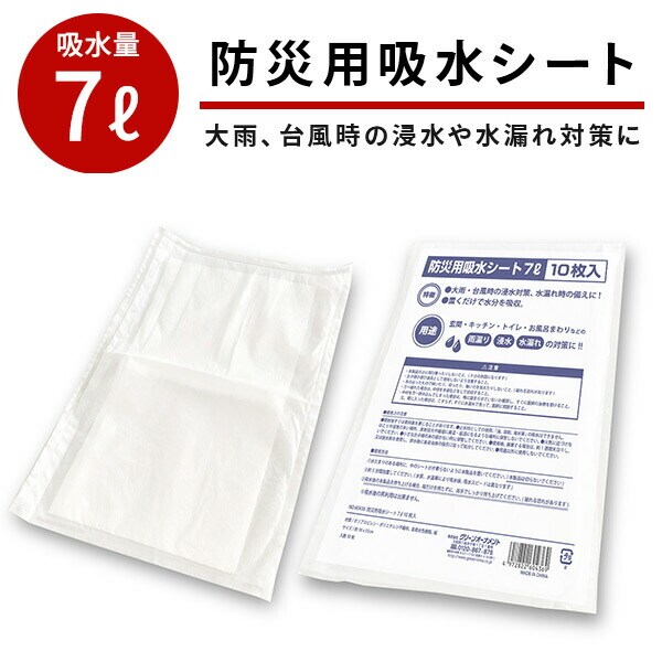 防災用吸水シート 7L 10枚入り 吸水シート 浸水 水漏れ 雨漏り キッチン トイレ お風呂 防災用品 防災グッズ グリーンオーナメント 【送料無料】