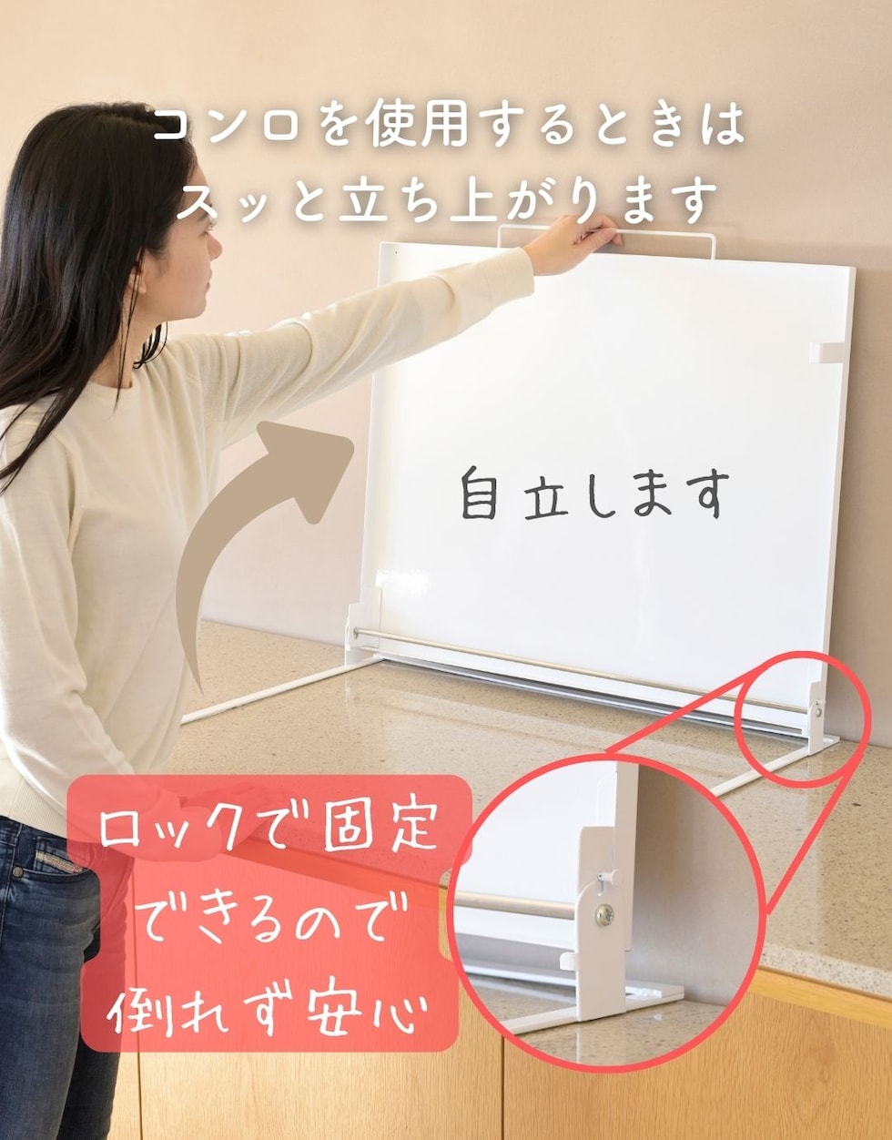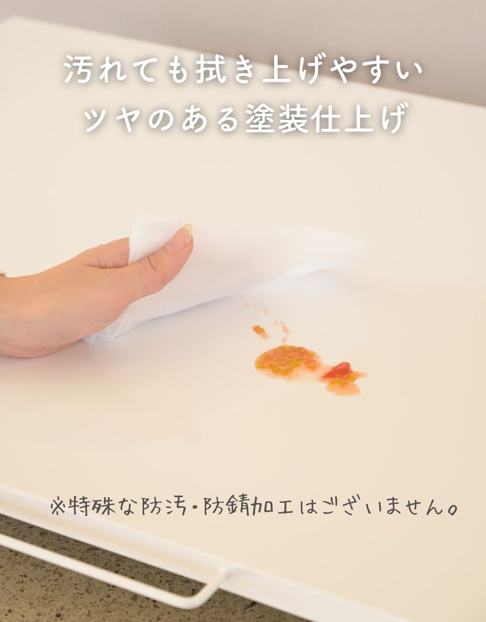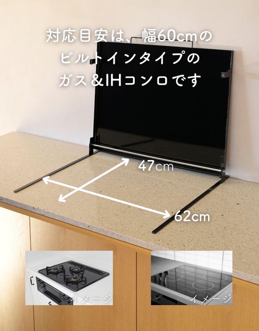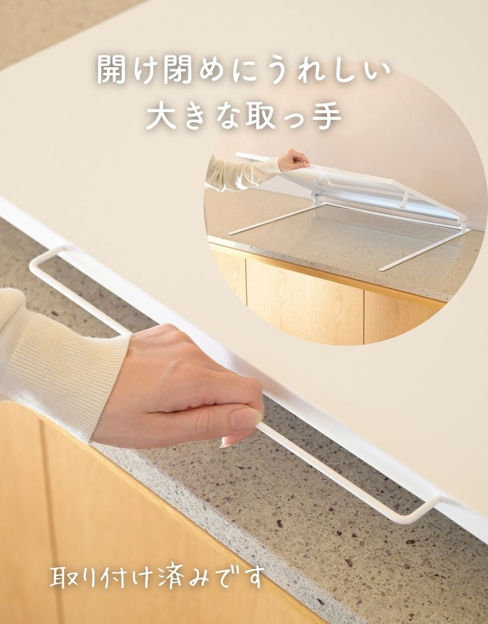 | 商品説明 | ●完成品でお届け ●ガスやIHのビルトインコンロの上を、作業スペースや一時置きとして使える便利グッズ ●コンロがむき出しにならないので、ホコリ防止やペットのいたずら防止にも活躍 ●細部まで丁寧なつくりの、燕三条製 ●対応目安: 幅60cmまでのコンロ ●折りたたみ式で、コンロを使う際は広げて展開 ●展開時は自立し、ロックもかかるので安心 ●取っ手付きで開け閉めをサポート ●ネジ打ちはなく置くだけタイプ ●付属の強力両面テープで固定も可能 (付け外しは不可) ●耐荷重: 5kg ●天板サイズ: 幅65.5 奥行51cm ●天板下隙間: 高さ5.4 幅62 奥行47cm ●天板展開時高さ: 56.5cm |