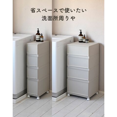 | 商品説明 | ※「中が透けない 壁付き チェスト 専用 ズレない 天板」はこちらのケースには使えません。 ●クローゼットや洗面所、リビングや机の上など、おうちのあらゆる場所で使える中が透けないプラスチックタイプ ●ホコリが入りにくい側面と裏面 ●MSサイズ3個とLSサイズ1個の合計4個セット ●取り外し可能なキャスター付き ●スムーズな開閉の引き出し ●引き出しはストッパー付きで、引き出し過ぎてもズレ落ち防止 ●引っかかりのないスムーズな開閉 ●スタッキング時にずれ防止の連結パーツ付き ●キャスターを使わない時用の滑り止めも付属 ●キャスターの高さ:4.3cm ●キャスター取り付け時の耐荷重: 10kg ●【MSサイズ】 ●1個当たり 幅18.8×奥行き35.5×高さ18.8cm 重量0.83kg ●キッチンカウンター上や洗面所での小物収納、CDの収納にちょうどいいMサイズ ●CDの収納目安: 約30枚 ●内寸: 幅14.3×奥行32.6(間口25.6)×高さ14.3cm ●耐荷重: 3kg ●仕切り1枚(グレージュ、ライトグレーはクリアです) ●【LSサイズ】 ●1個当たり 幅18.8×奥行き35.5×高さ25cm 重量0.99kg ●キッチン、洗面所などのストックやボトルが入り、DVDやゲームソフトの収納が入るLサイズ ●DVDの収納目安: 約20枚 ●内寸: 幅14.3×奥行32.6(間口25.6)×高さ20.5cm ●耐荷重: 3kg ●仕切り1枚(グレージュ、ライトグレーはクリアです) |