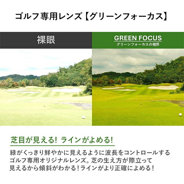 | 商品説明 | ●ゴルフ専用レンズサングラス ●シャープな印象のスクエアタイプ ●頭を包み込むようなロングテンプルは激しい動きでもズレることなく対応 ●グリーンフォーカスレンズは緑系の濃淡がクッキリ見えるコントラスト性を持ち、ゴルフでは芝目が見えやすくなるほか、紫外線と眩しさも効果的にカットするレンズです ●SIZE:Large ●LENS COLOR:GREEN FOCUS ●可視光線透過率:46% ●紫外線カット率:99%以上 ●LENS COAT:キズ防止ハードコート/反射防止コート ●LENS CURVE:6カーブ |