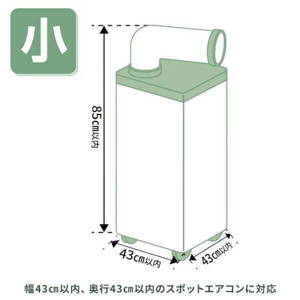 | 商品説明 | ●幅43cm、奥行43cm、高さ85cm以内のスポットエアコンに対応 ※冷風ダクト、排熱ダクトの形状によっては取り付けられない場合や、高さが足りなくなる場合がございます。高さが超える場合は、ダクトを外し手ご使用ください。 |