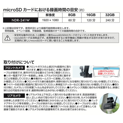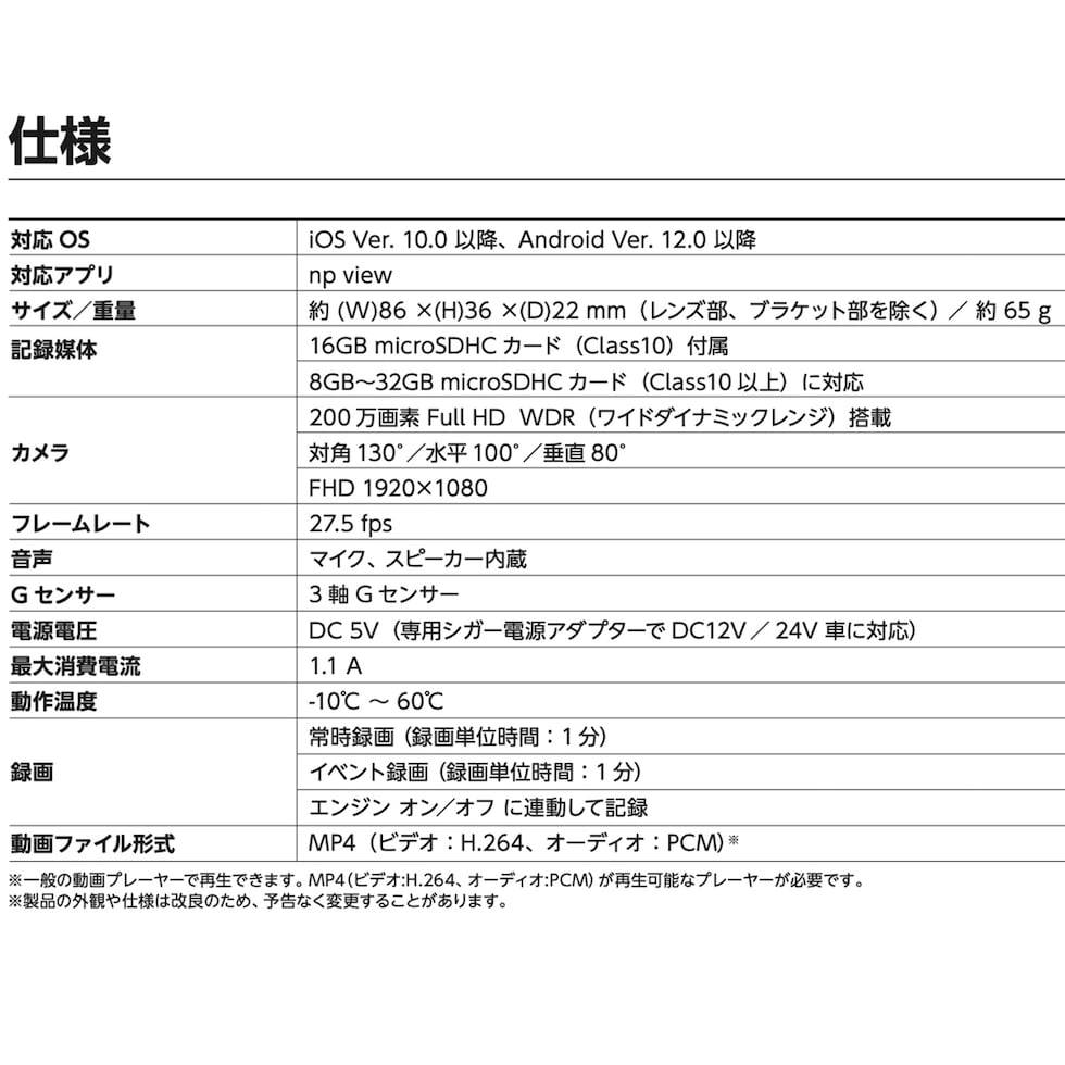 | エンプレイス nplace ドライブレコーダー ドラレコ Wi-Fi搭載 200万画素 両面タイプ 16GB SDカード付属 NDR-241W |