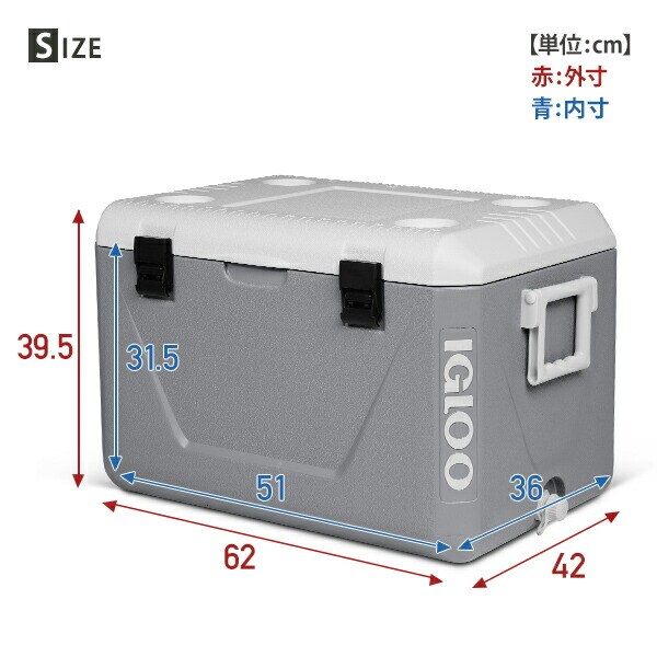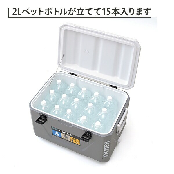| 商品説明 | ●容量:55L ●世界的ブランド アメリカ IGLOO社製のクーラーボックス ●収納目安:350ml缶×98本 2Lペットボトル×15本(立てて入ります) |