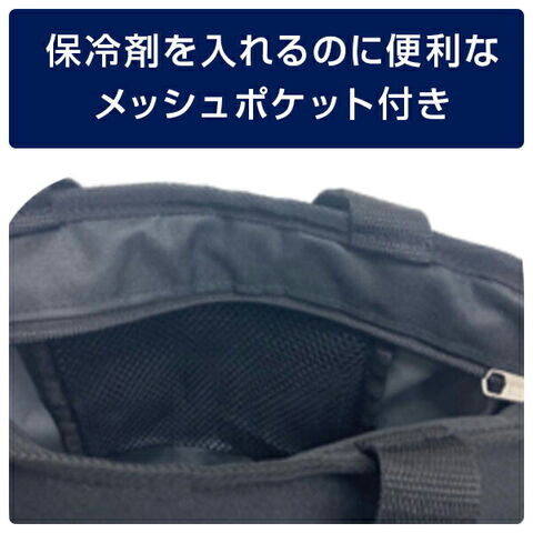 商品説明 ●保冷剤を入れるメッシュポケット付き