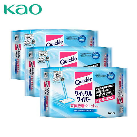 | 花王 Kao クイックルワイパー 立体吸着ウエットシート 香りが残らないタイプ 32枚×3パック(96枚) |