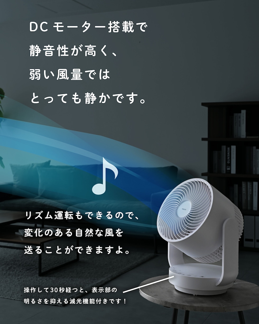 | 商品説明 | ●電源:AC100V(50/60Hz) ●消費電力:28W ●電源コード長:約2.4m ●電気代目安(1時間あたり):約0.9円(50/60Hz) ●DCモーター搭載 ●羽根:20cm径 3枚 ●風量:7段階 ●リズム風搭載 ●タイマー搭載:【切】1/2/4h 【入】2/4/6h ●入切タイマー同時設定可能 ●最大風量ボタン搭載:1プッシュで最大風量7にて稼働 ●上下左右自動首振り ●メモリー機能搭載 ●減光モード搭載 ●リモコン付属 ●お手入れ簡単:工具不要でガード全て取り外し可能 ※ガードと羽根は水洗い可能 ●ほこりが入りにくい全閉式モーター採用 ●帯電防止加工:前ガードと羽根は帯電防止加工を施してほこりが付着しにくい ●適用畳数:~28畳まで ●メーカー保証:1年間 |