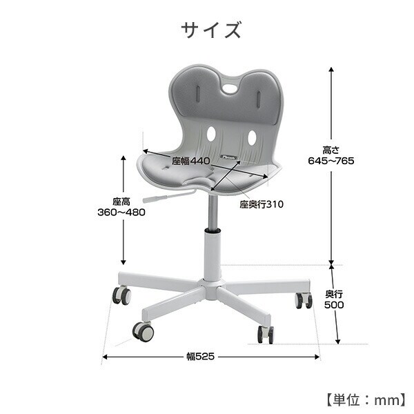 骨盤サポート オフィスチェア 座高36-48cm キャスター付き マイコンフィ MYCOMFY
